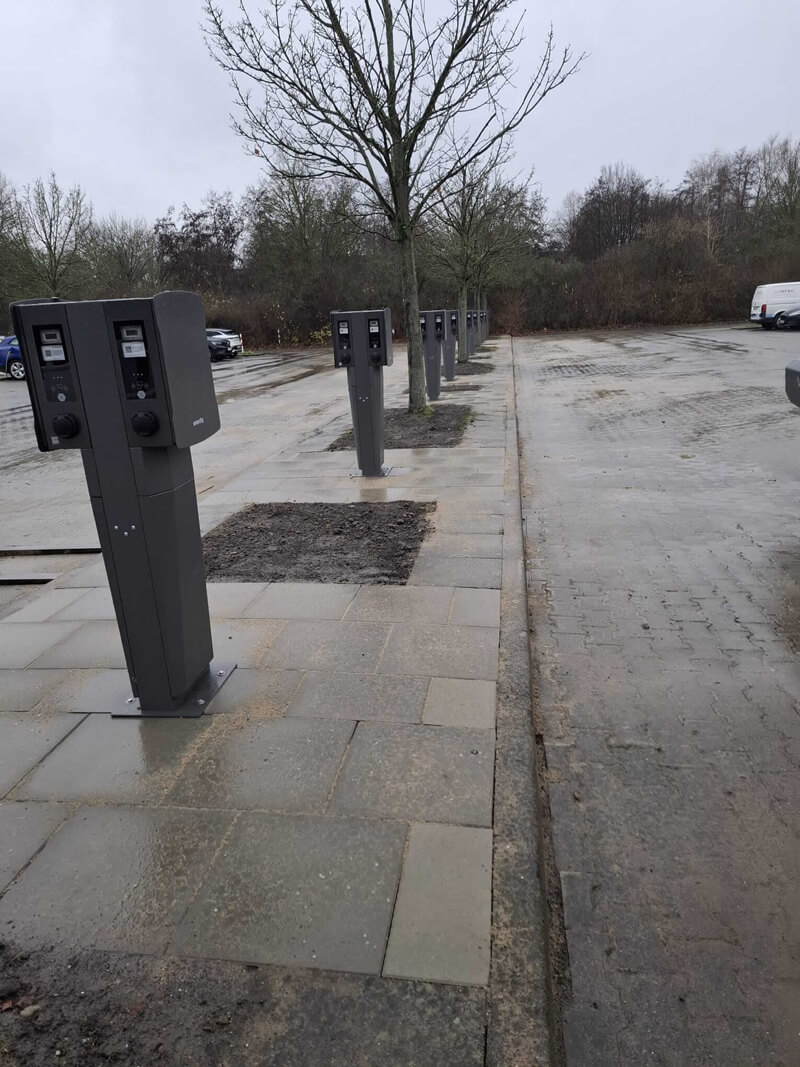 Im zweiten Bauabschnitt haben wir im Auftrag eines Energieversorgers bei der Finanz IT 40 Ladepunkte aufgestellt. Die Baumaßnahme umfasst ca. 2km Kabelzug in unterschiedlichen längen und Querschnitten, ca. 80 m³ Bodenaushub, welcher zum großen Teil per Hand bewegt werden musste. Trotz vieler Hindernisse wurde die Baumaßnahme in einer Bauzeit von 4 Wochen abgeschlossen